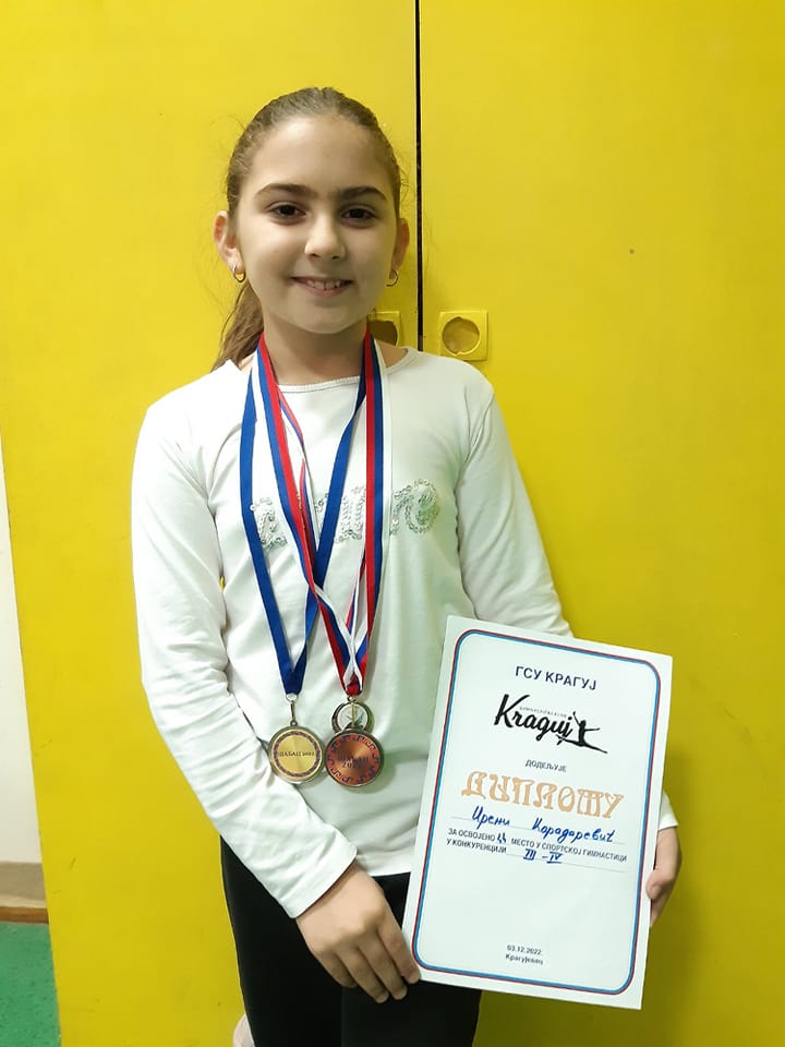 Ученица одељења 4/1 Ирена Карадаревић освојила је две медаље, сребрну и бронзану, на такмичењу у гимнастици одржаном 3. децембра у Крагујевцу.