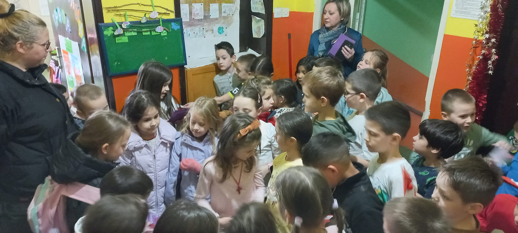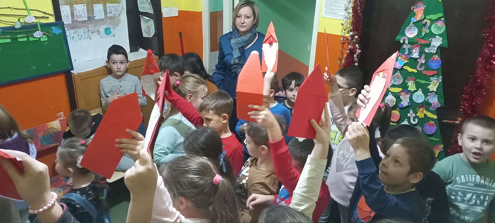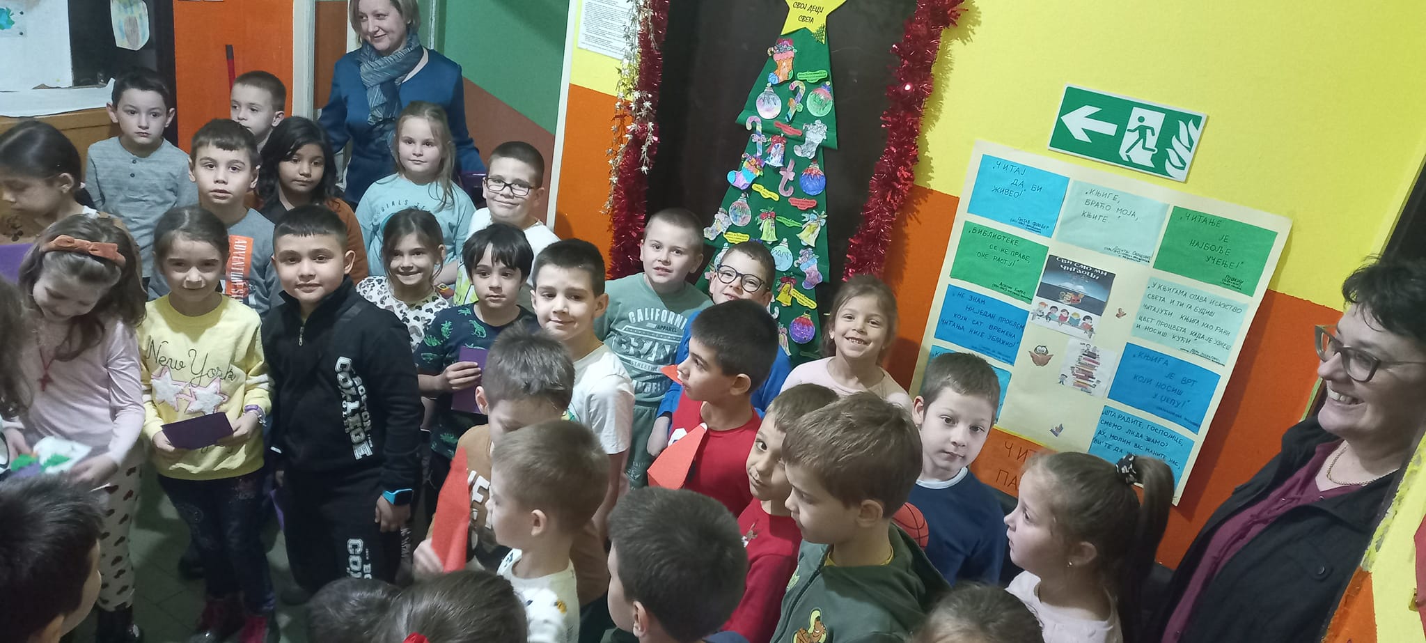 Данас су предшколци из вртића "Бубамара" оплеменили ходник школе једном јединственом акцијом. Уз подршку васпитачица, осликали су украсе и написали новогодишње жеље свој деци света, које су потом поставили на јелку. Врхунац забаве уследио је када су им се придружили ученици првог разреда, који су за своје другаре предшколце направили новогодишње честитке! Сви су уживали у овом дивном дану, а посебно у даривању, лепим жељама и свим чарима које нам доносе предстојећи празници.