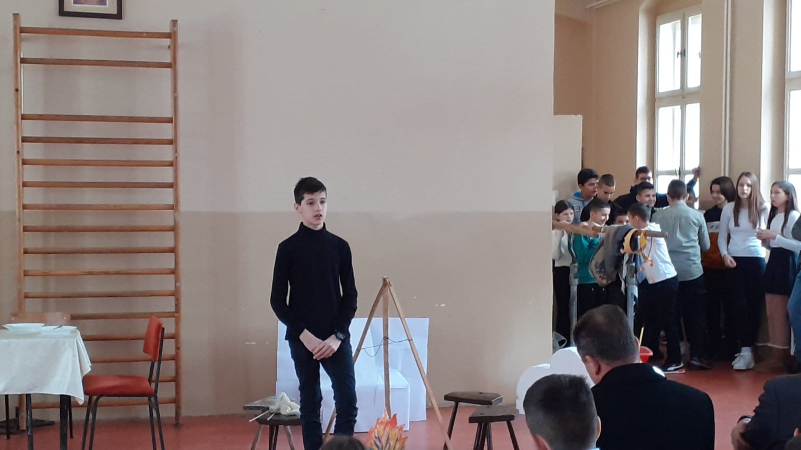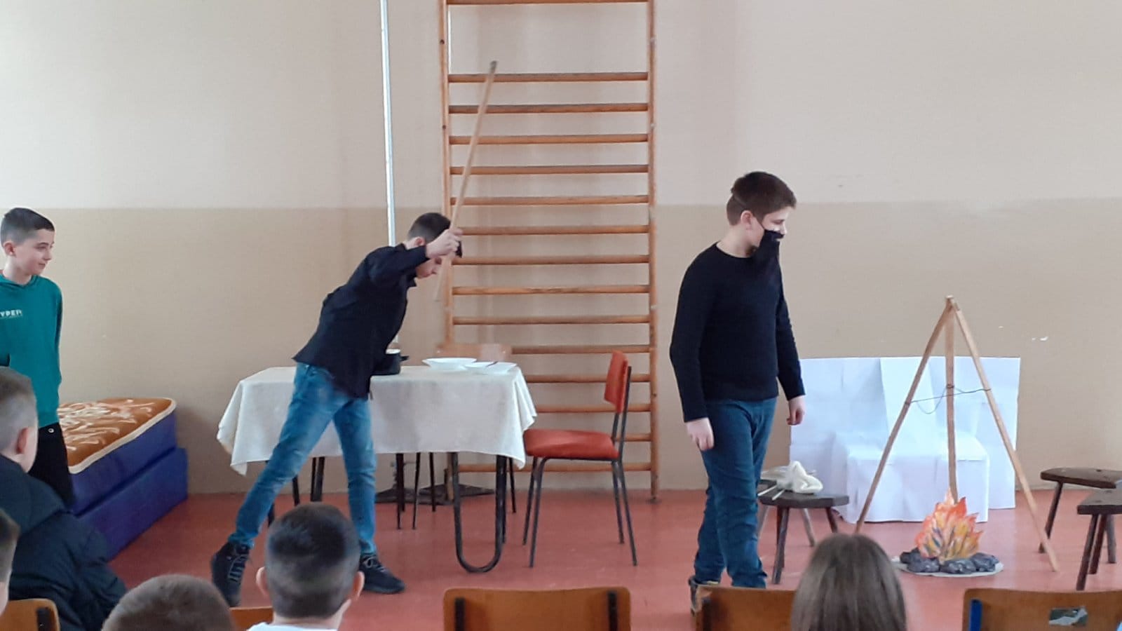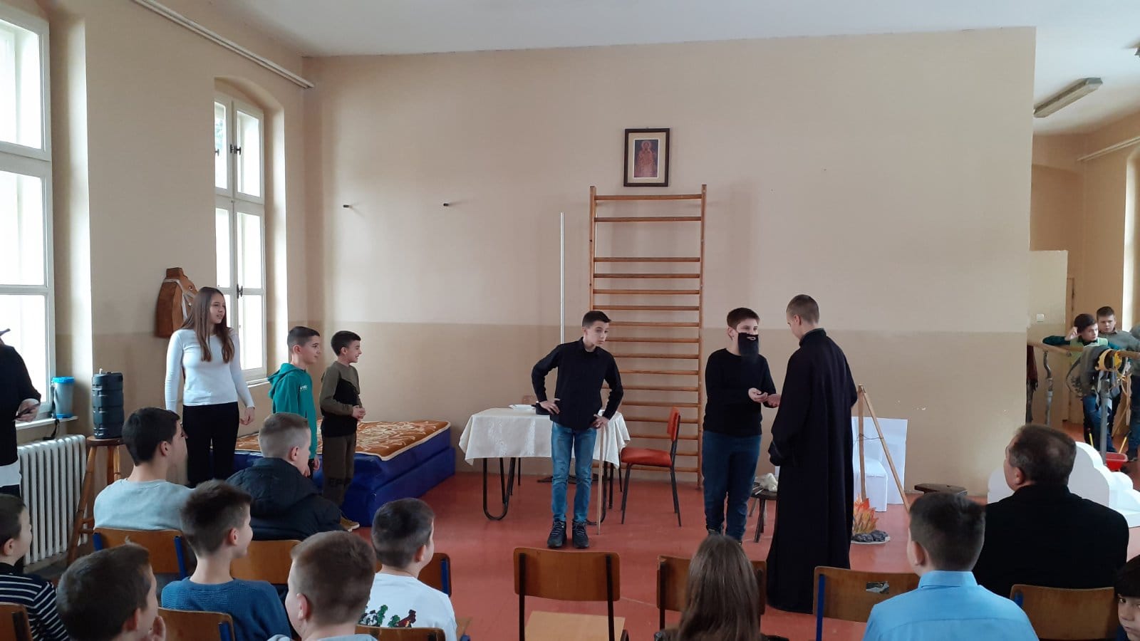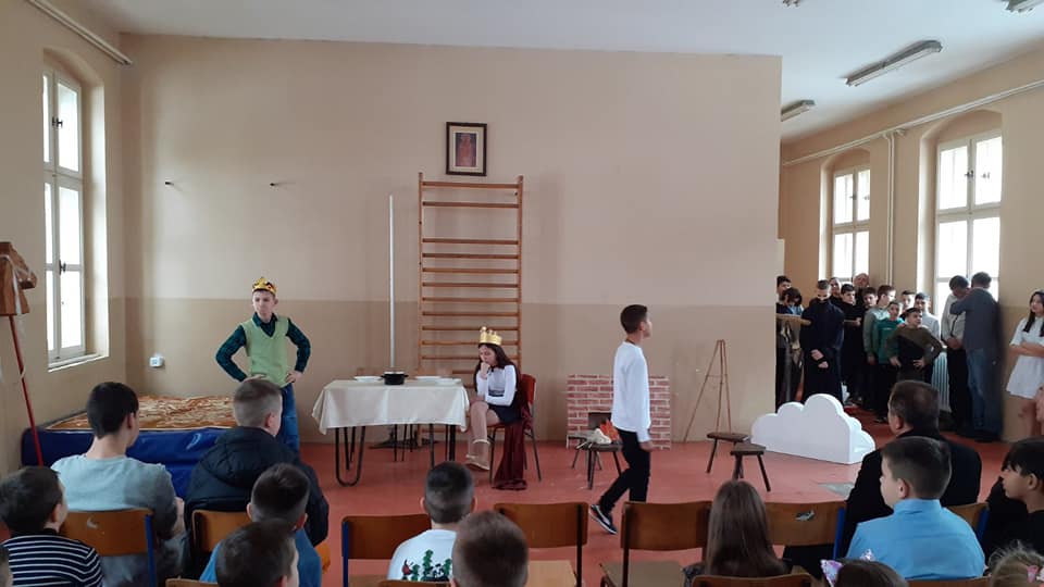 Ученици драмске секције су извели неколико сценских призора из живота Светог Саве - ”Деда и унук”, “Свети Сава и властелин”, “Свети Сава и сељак”