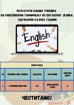 Општинско такмичење из енглеског језика одржано је 4. фебруара у ОШ "Стојан Новаковић" Шабац, а даље је прошао Милутин Станковић 8/2, са освојених 36/40 бодова!