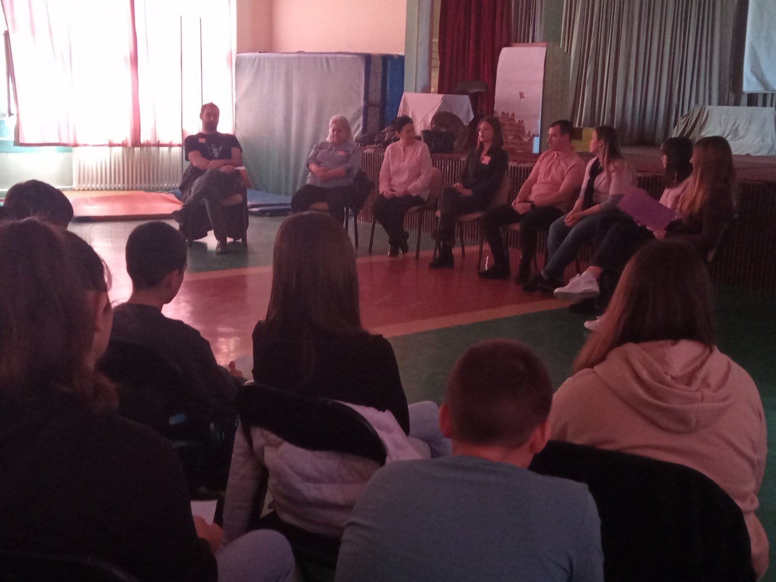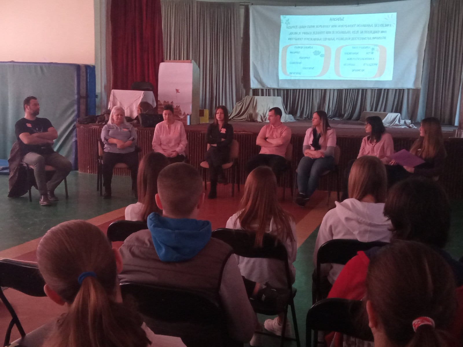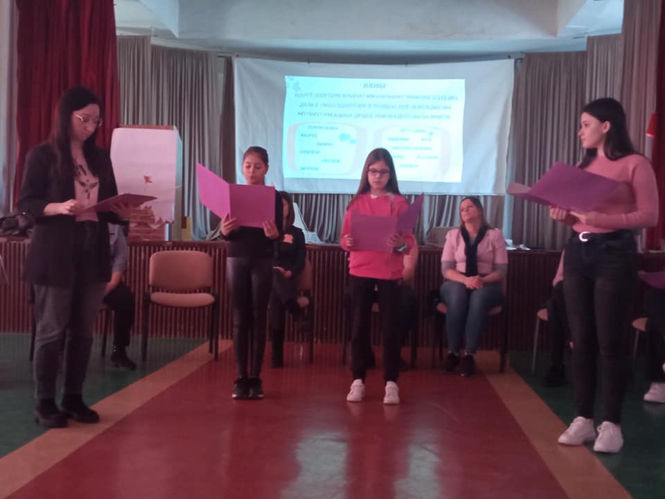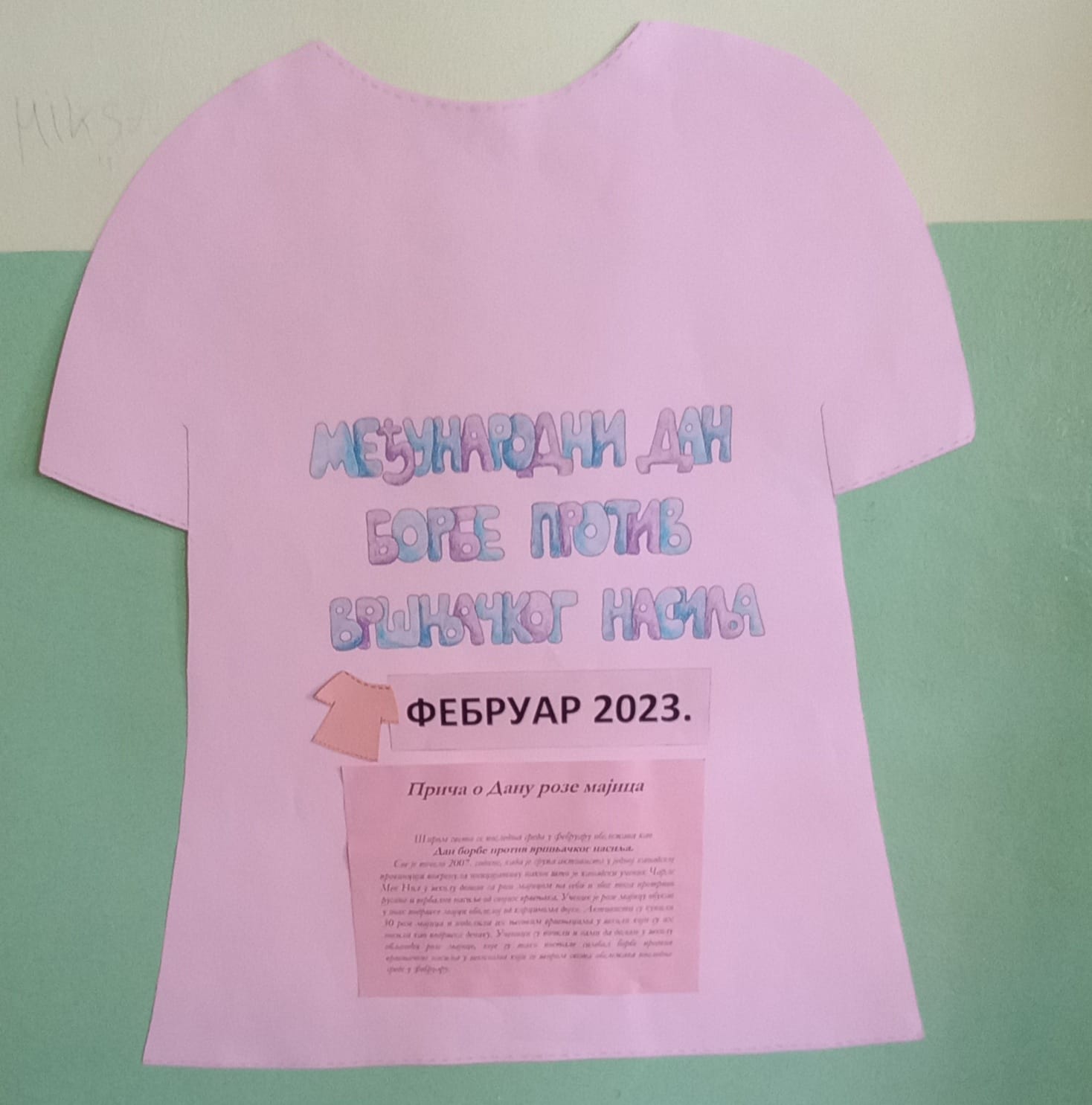 Широм света се последњa среда у фебруару обележава као Дан борбе против вршњачког насиља. Све је почело 2007. године, када је група активиста у једној канадској провинцији покренула иницијативу након што је канадски ученик Чарлес МекНил у школу дошао у розе мајици и због тога претрпео ругање од својих вршњака. Он је розе мајицу обукао у знак подршке мајци оболелој од карцинома дојке. Активисти су купили 50 розе мајица и поделили их његовим вршњацима у школи који су их носили у знак подршке дечаку. Ускоро су ученици почели и сами да долазе у школу облачећи розе мајице, које су тако постале симбол борбе против вршњачког насиља у школама. Насиље и злостављање укључује “сваки облик вербалног или невербалног понашања, без обзира да ли је учињен једанпут или је понављан, које за последицу има могућност угрожавања здравља, развоја и достојанства личности детета, ученика или запосленог”. Та дефиниција је дата у Протоколу поступања у установи у одговору на насиље, злостављање и занемаривање, једном од докумената којим се регулише ова појава у школи. Овако широка дефиниција обухвата низ ситуација које се у школи, али и у друштву, дешавају на свакодневном нивоу. Стога не чуди да је последњих година насиље велика тема не само за просвету, већ и ширу друштвену заједницу. У насилном циклусу не учествују само насилник и жртва. Свако од нас се може наћи и у другим улогама које могу допринети да се насиље настави или прекине: асистенти насиља (assistants of the bully)- придружују се насиљу након што га неко започне и преузимају улогу саучесника; појачање (reinforcers)- не нападају активно, али подржавају насиље добацивањем, смејањем; аутсајдери (outsiders)- остају неактивни и не заузимају ничију страну и тиме прећутно одобравају насиље; браниоци (defenders)- покушавају да помогну жртви и зауставе насилни циклус. Имајући у виду изложеност насиљу у медијима и друштву уопште, могли бисмо рећи да свако од нас учествује кроз неку од ових улога у насилном процесу на свакодневном нивоу. Школа не може бити изузетак. Како је жртва вршњачког насиља увек дете, последице се најчешће одражавају на сам развој. Сем општег осећаја несигурности, беспомоћности, повећаног нивоа анксиозности, ученик са временом може осећати страх од одласка у школу, што утиче и на школски успех али и на осећај изолације. Самопоштовање опада, јавља се самооптуживање и самосажаљење уз осећања беса и жеље за осветом. Неке од компликација могу бити и физички симптоми (главобоље, болови у стомаку), поремећаји исхране и сна, поремећаји пажње и концентрације. Све ово може водити до појаве депресије, па и суицидалних мисли. Налази сугеришу да последице насиља које се догодило у пубертету могу бити дугорочне Ми смо овај дан обележили на један посебан начин. Позвали смо одрасле да се сете свог школовања и да нам испричају неку ситуацију вршњачког насиља коју и данас памте. Они су своје приче поделили уз помоћ наше водитељке Ане а у формату који се назива „Жива библиотека“. Жива библиотека представља један начин промовисања људских права. Њена методологија је специфична. Књиге су живи људи, пажљиво одабрани. Жива библиотека функционише баш као права библиотека, где читаоци долазе да позајме „књигу“ на одређено време. Наше књиге су данас били наставници а са нама је била и једна посебна гошћа, Софка Васиљковић, активисткиња и