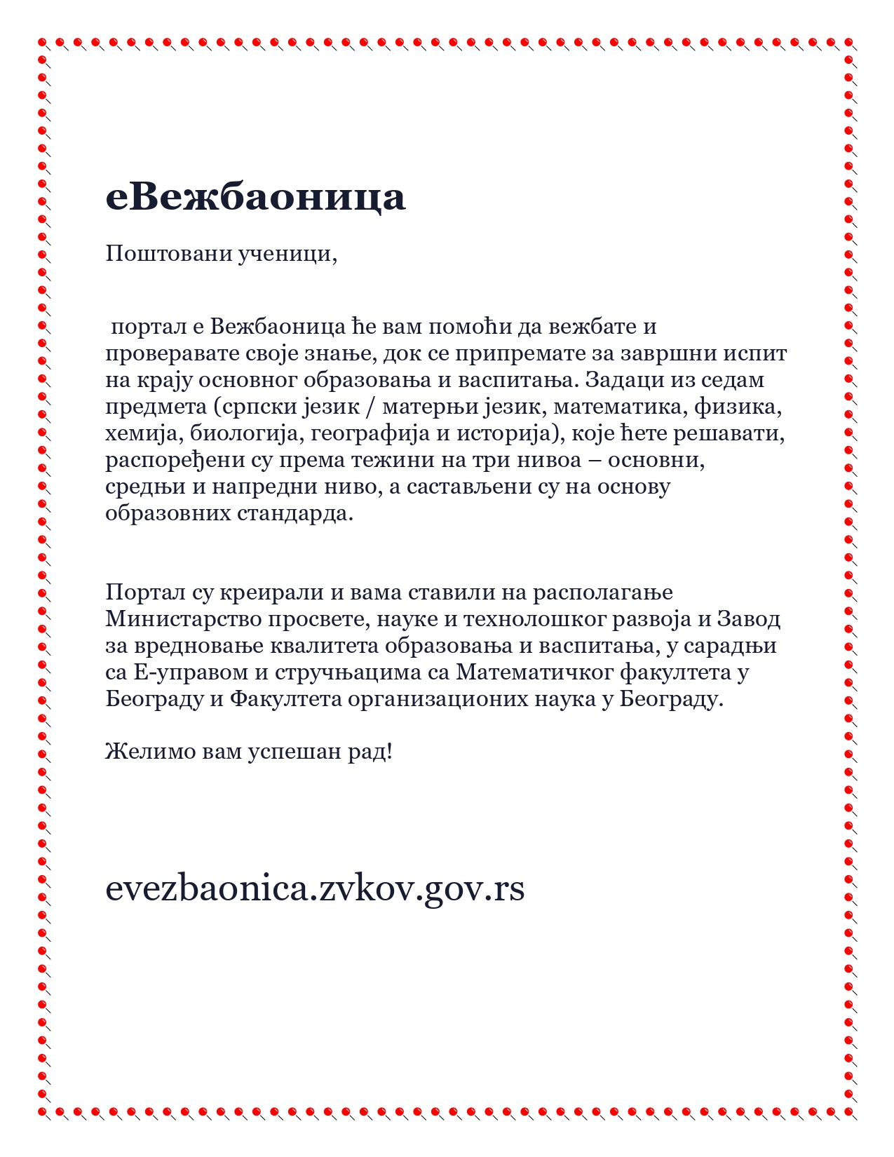 Желимо вам успешан рад!
