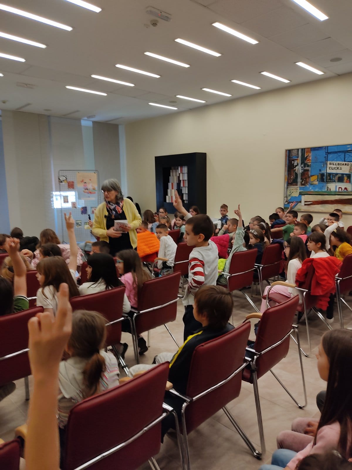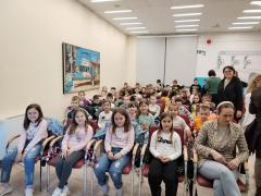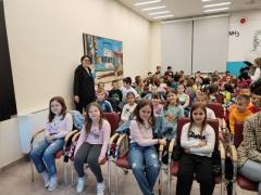 Програм "О дугмету и срећи, мачкама, нотама и читању" приредила је Јасминка Петровић, наша истакнута књижевница за децу и младе, а ученици су уживали у непосредној интеракцији као што уживају читајући њене књиге!