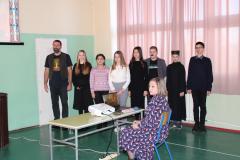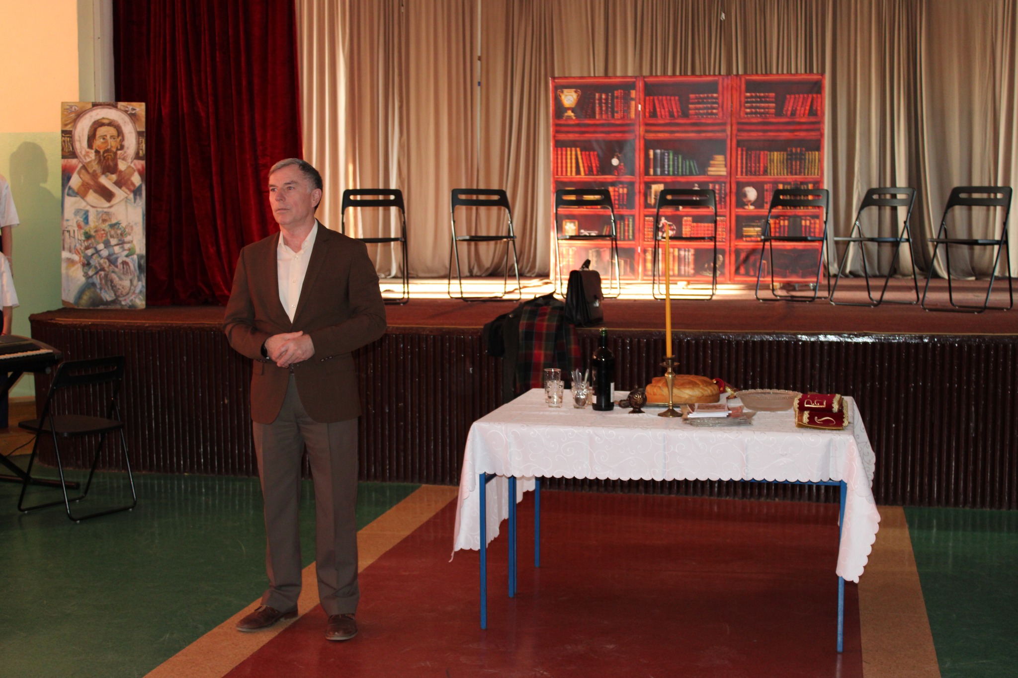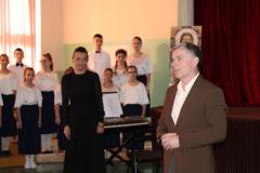 Школски хор је певао Химну Св. Сави, „Светло у тами“ / Л. Вукомановић у извођењу Нине Рашевић V/3, Песму „Земљо моја” у извођењу Јулијане Петровић V/2 и песму „Точак живота“ Б. Ђорђевић/Легенде у извођењу Страхиње Степановића V/2. Драмски текст посвећен животу и делу Светог Саве извели су Лана Салкунић VI/2, Андреја Мијаиловић VI/2, Анђела Муратовић VI/2, Искра Јовановић VI/2, Вукашин Милинковић V/2, Данило Бурсаћ V/3 и Никола Теодоровић  VI/2. Сценографију и изложбу ученичких радова поставила је наставница ликовне културе Ана Ивковић Мирковић.