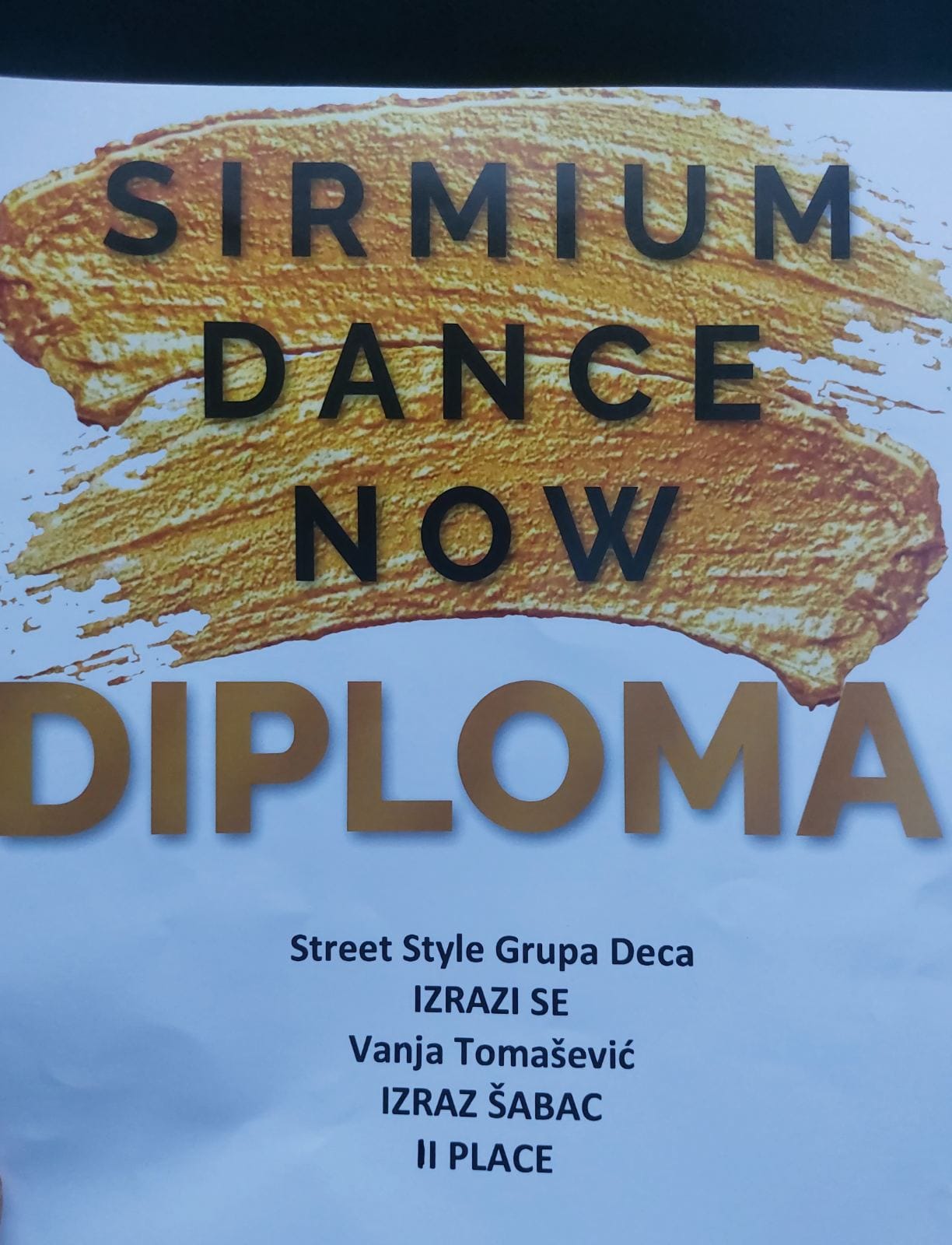 Вања Томашевић 3/2 освојила је друго место заједно са својом групом "Израз" на плесном фестивалу “Sirmium Dance Now”, одржаном 9. марта у Сремској Митровици. Честитамо!