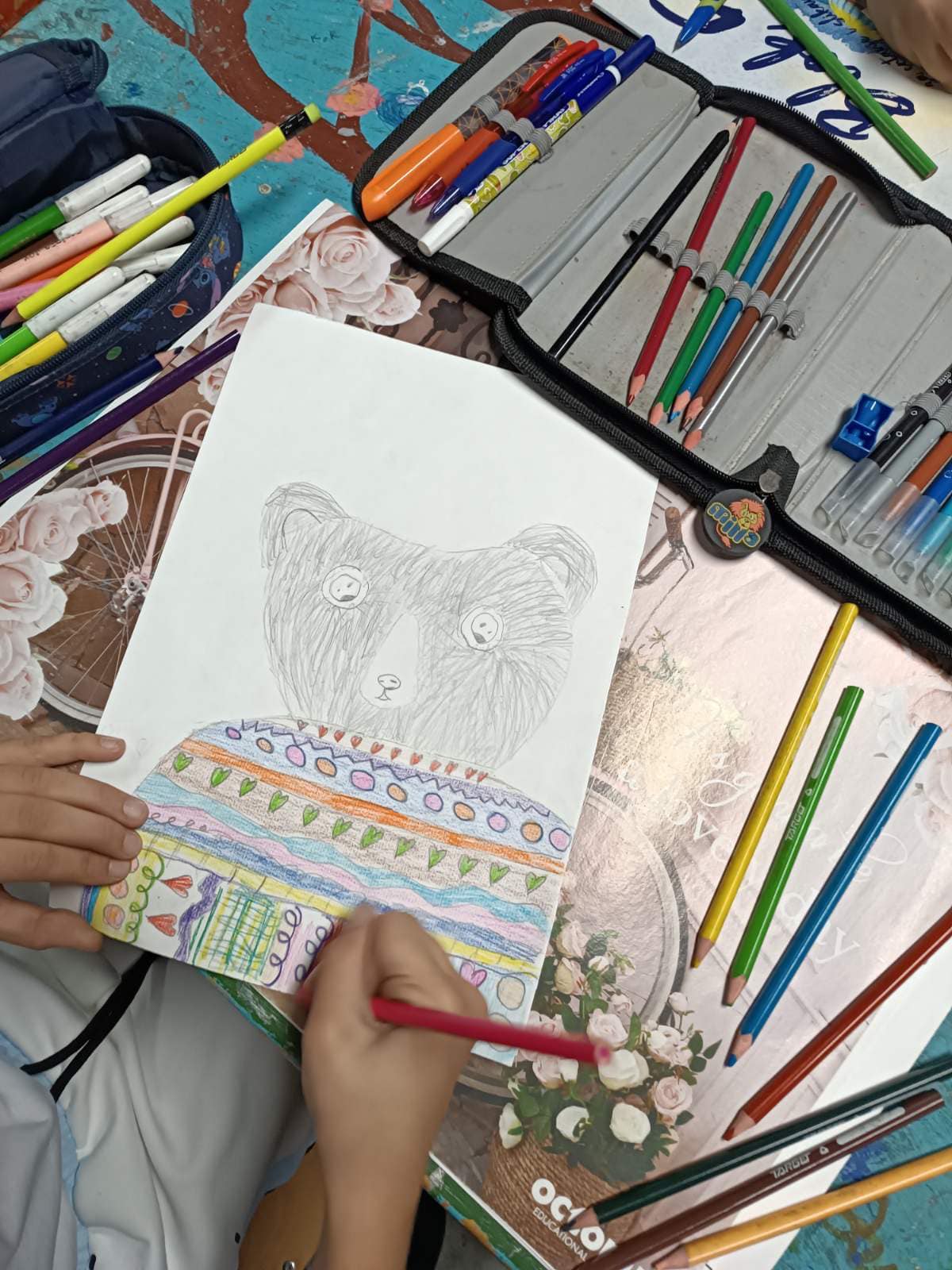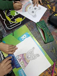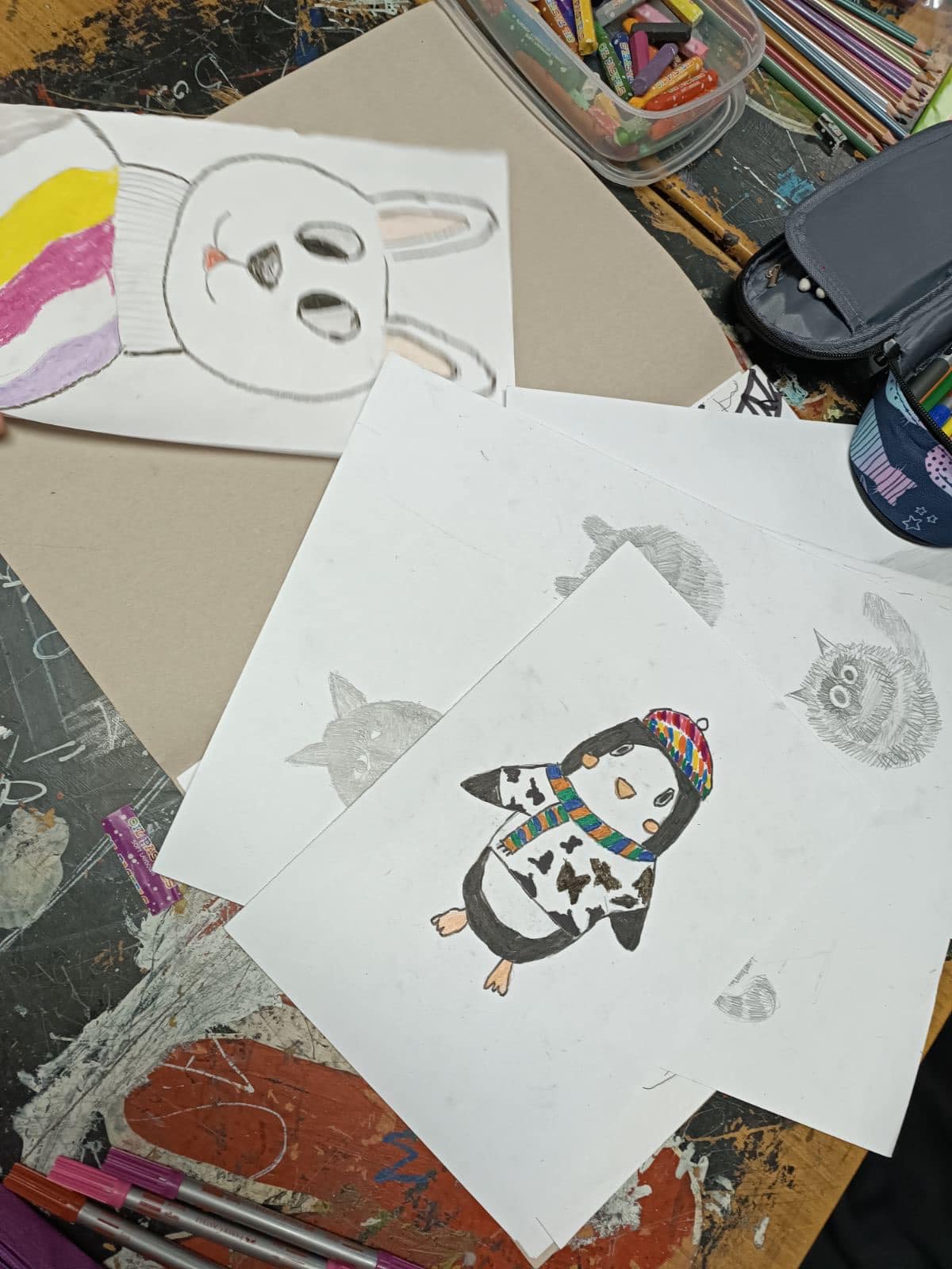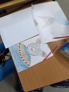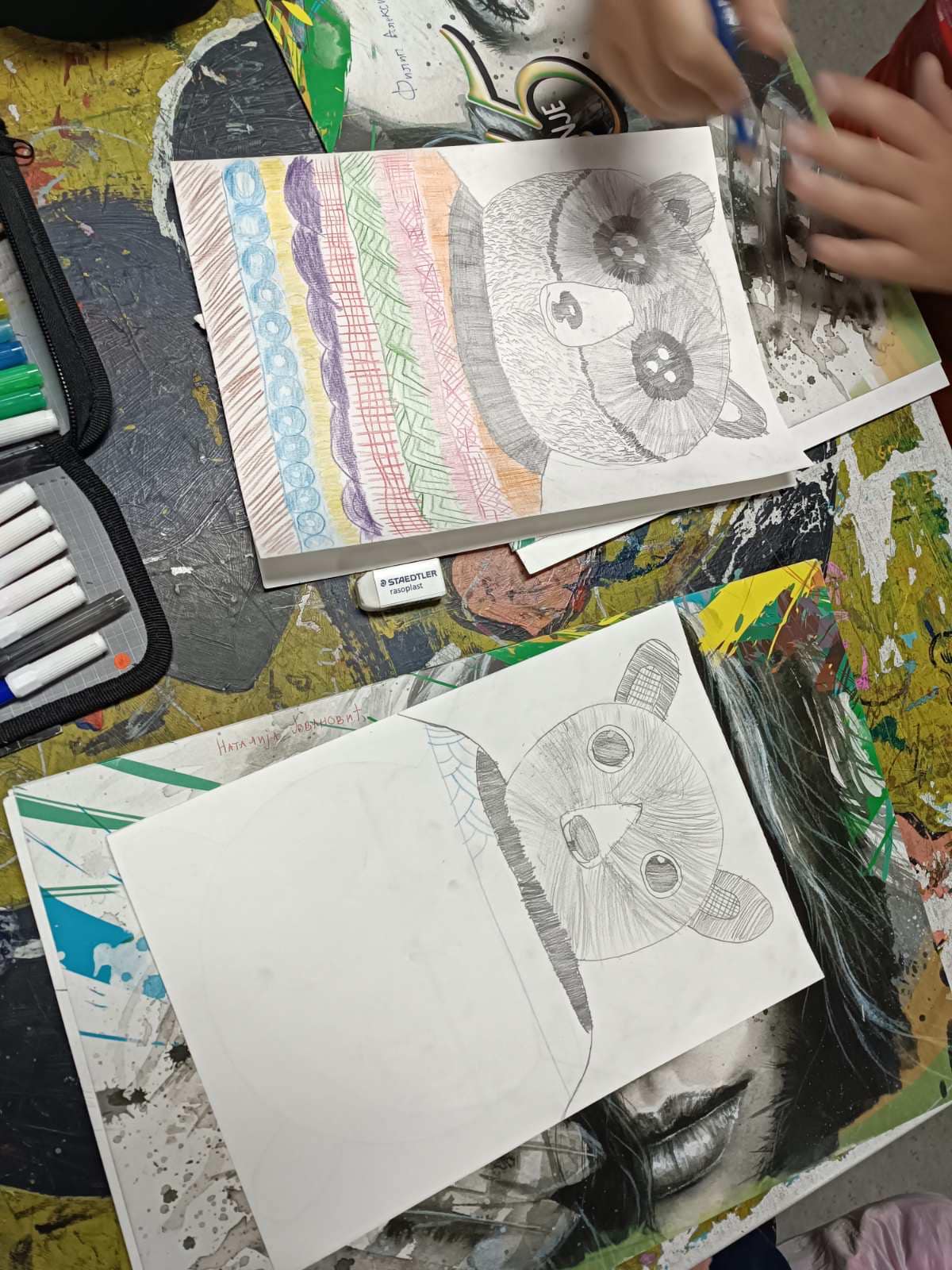Ученици одељења 5/1 и 5/3 су на часу цртања, сликања и вајања код наставнице Наташе Недић изучавали линију као средство за стварање различитих квалитета површина.