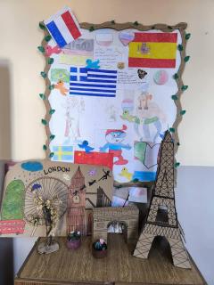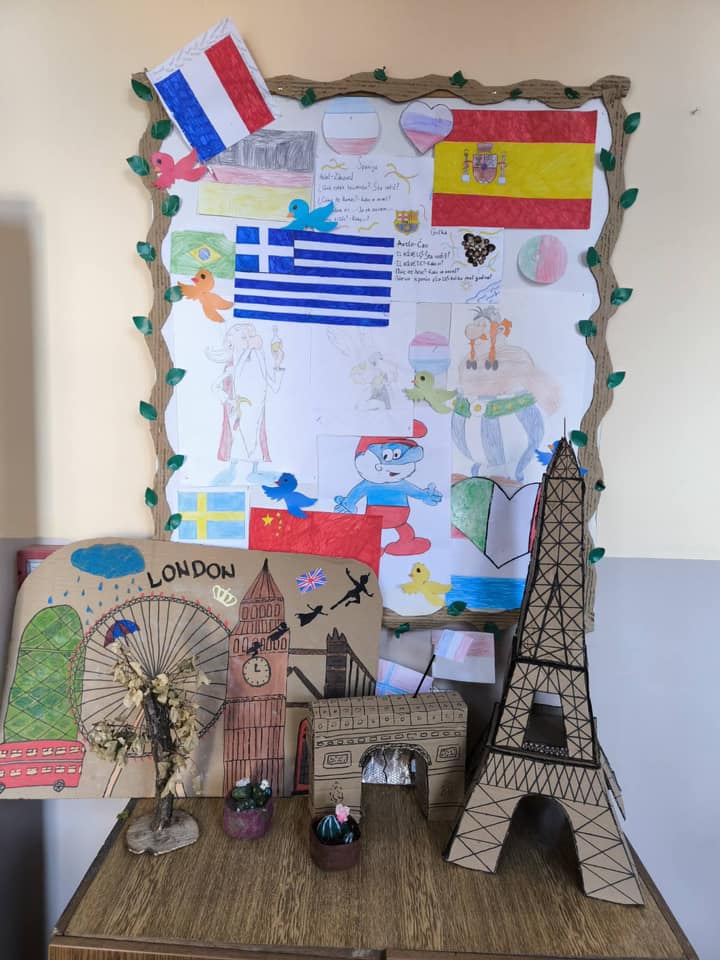 Ученици од 5. до 7. разреда потрудили су се да улепшају своју школу радовима које су изложили у “Европском кутку”, а посебан допринос дала је помоћна радница Маријана Томић, која им је помогла у изради Ајфелове куле и Тријумфалне капије.