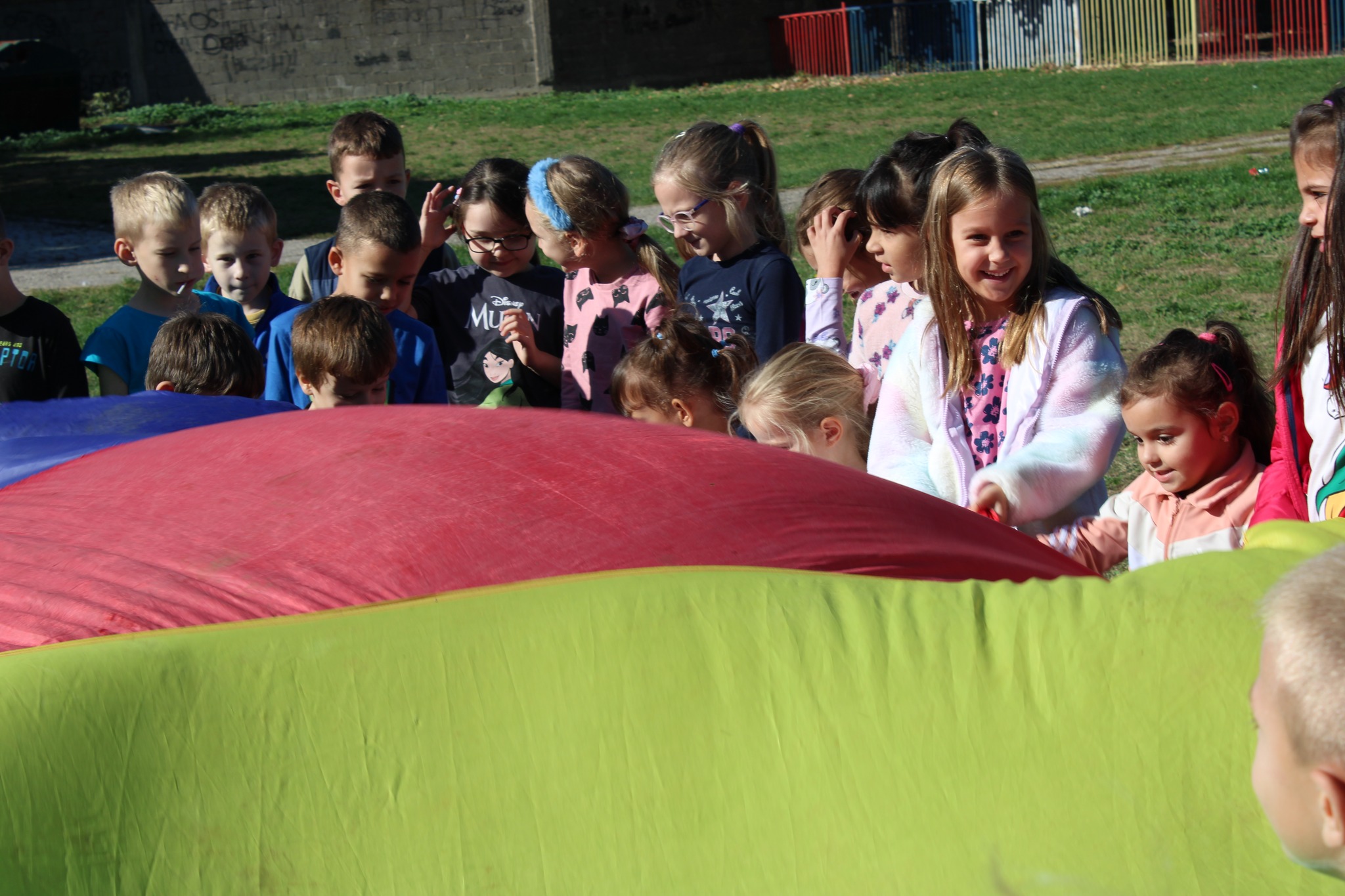 Данас су поводом обележавања Дечје недеље организоване игре без граница за оне најмлађе! Деца из вртића Бубамара и ученици првог разреда имали су прилику да се сјајно забаве уз васпитача Ђорђа Дамњановића, а весела граја стотинак малишана испунила је двориште наше школе.