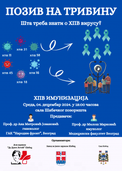 Трибина посвећена ХПВ вирусу и ХПВ имунизацији одржаће се 4.12.2024. године са почетком у 18 часова у сали Шабачког позоришта.