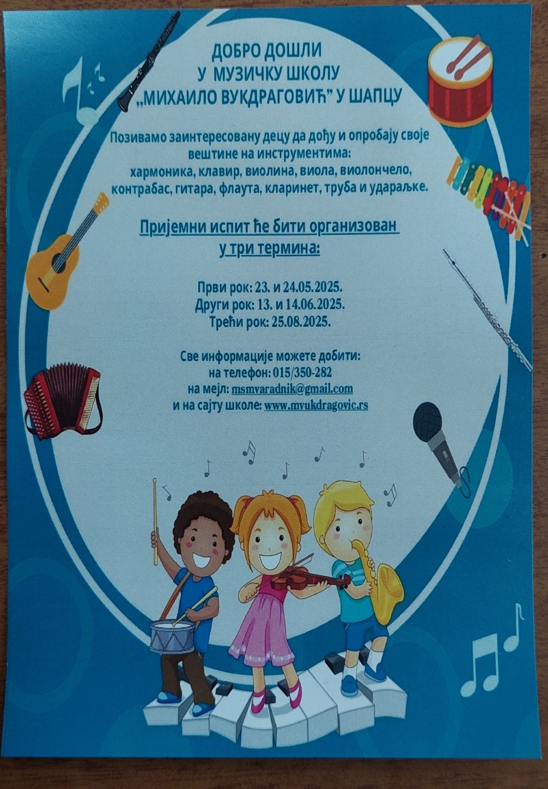 Данас је у нашој школи ученицима првог и другог разреда одржана промоција музичке школе "Михаило Вукдраговић". Ученици су уживали уз сјајне наступе, а ученик из одељења 1/1, коме је данас рођендан, је добио и рођенданску песму уз музичку пратњу. Међу промотерима су били и ученици наше школе. https://www.facebook.com/share/v/19Dstff7gm/