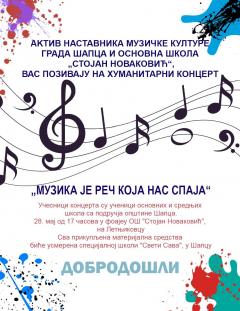 У среду 28.5.2025. године у 17.00 сати одржан је хуманитарни концерт под називом ,,Музика је реч која нас спаја” у фоајеу ОШ ,,Стојан Новаковић” Летњиковац, у организацији Градског актива наставника музичке културе Шабац и ОШ ,;Стојан Новаковић” Летњиковац.