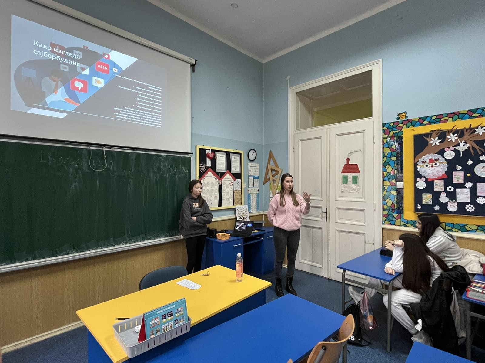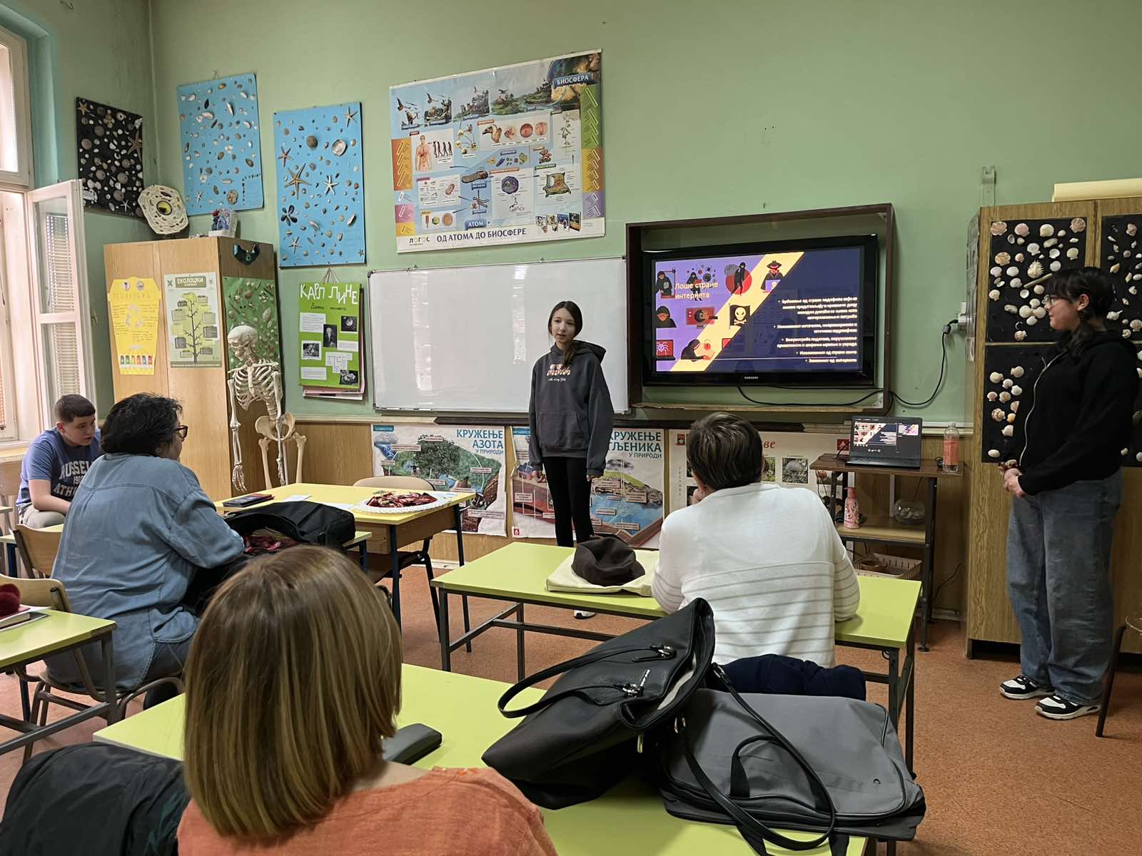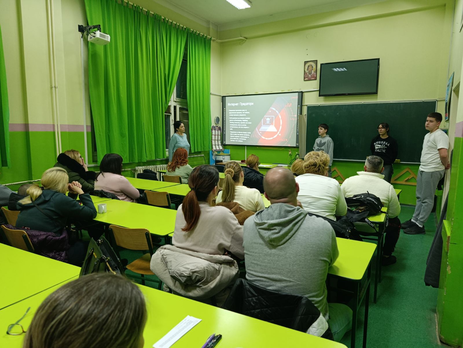 У оквиру пројекта „Адолесценти у акцији – борба против дигиталног насиља“, ученици седмог разреда су током ове недеље одржали дијалоге са ученицима, родитељима, наставницима и Саветом родитеља, где су их кроз презентацију упознали са правилима понашања на интернету, безбедном коришћењу интернета и дигиталном насиљу, као и о корацима које треба предузети уколико се осетимо небезбедно.