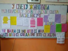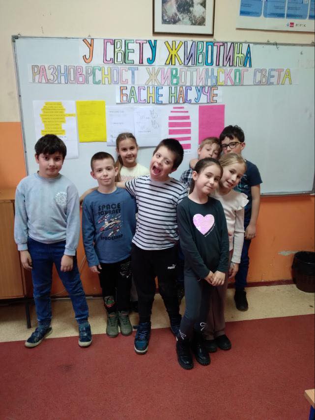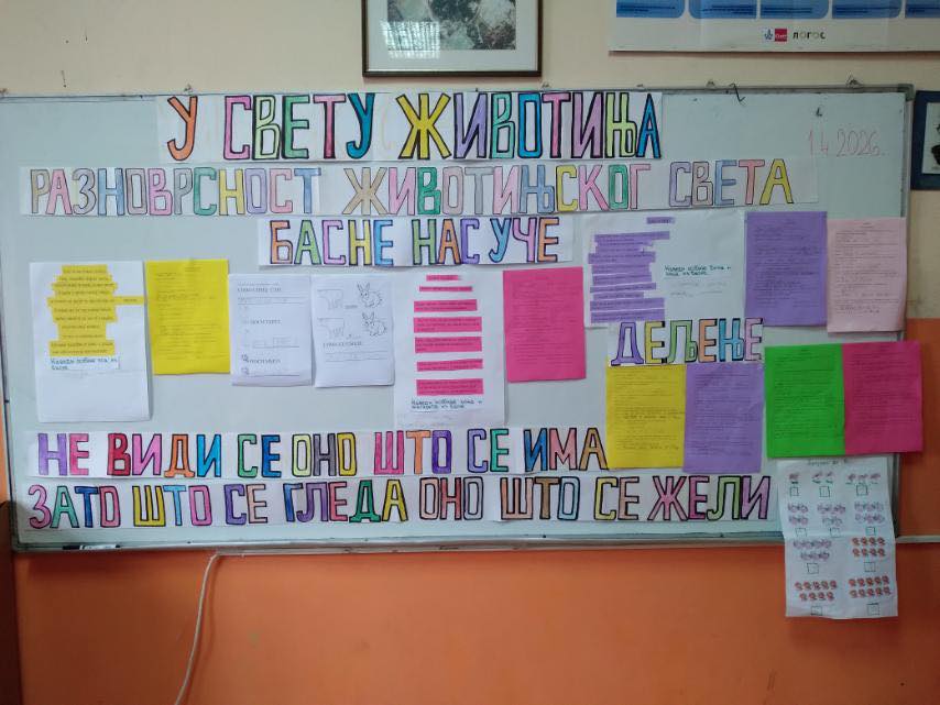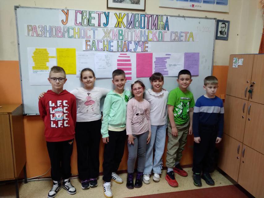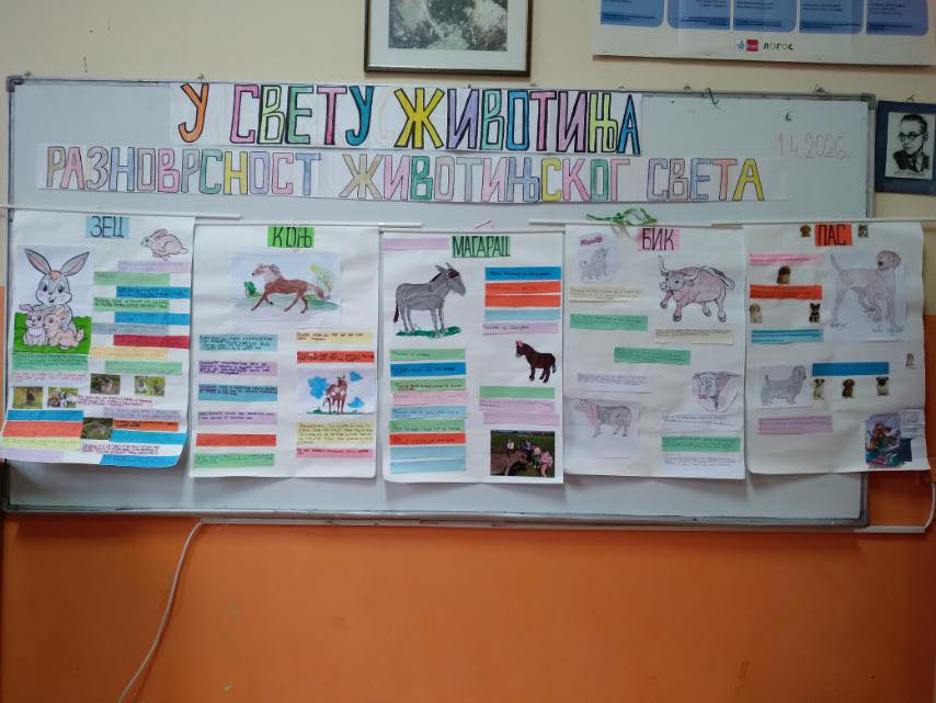 Тематским даном “У свету животиња", ученици 2/2 са учитељицом Весном Ераковић су кроз међупредметну повезаност наставних садржаја Света око нас, Српског језика, Енглеског језика, Математике, Физичког и здравственог васпитања утврдили постојећа и стекли нова знања о животињском свету.