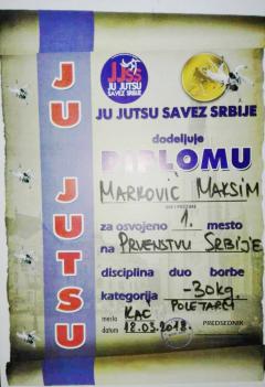 На првенству Србије у џију џици, oдржаном 18. марта 2018. године, Максим Марковић, ученик одељења 12, освојио је 1. место у својој катеорији!!!