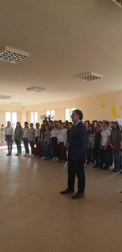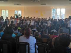 На самом почетку многобројну публику поздравио је хор који чине ученици од петог до осмог разреда, тј. чланови хорске секције. Публику су поздравили Химном Вуку Караџићу, Стевана Стојановића Мокрањца. Након хорске изведбе публици су се обратили директор школе Драгослав Павловић и учитељ Зоран Поповић.