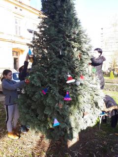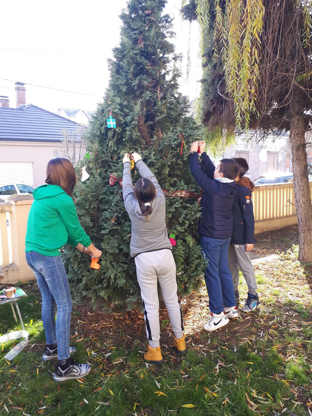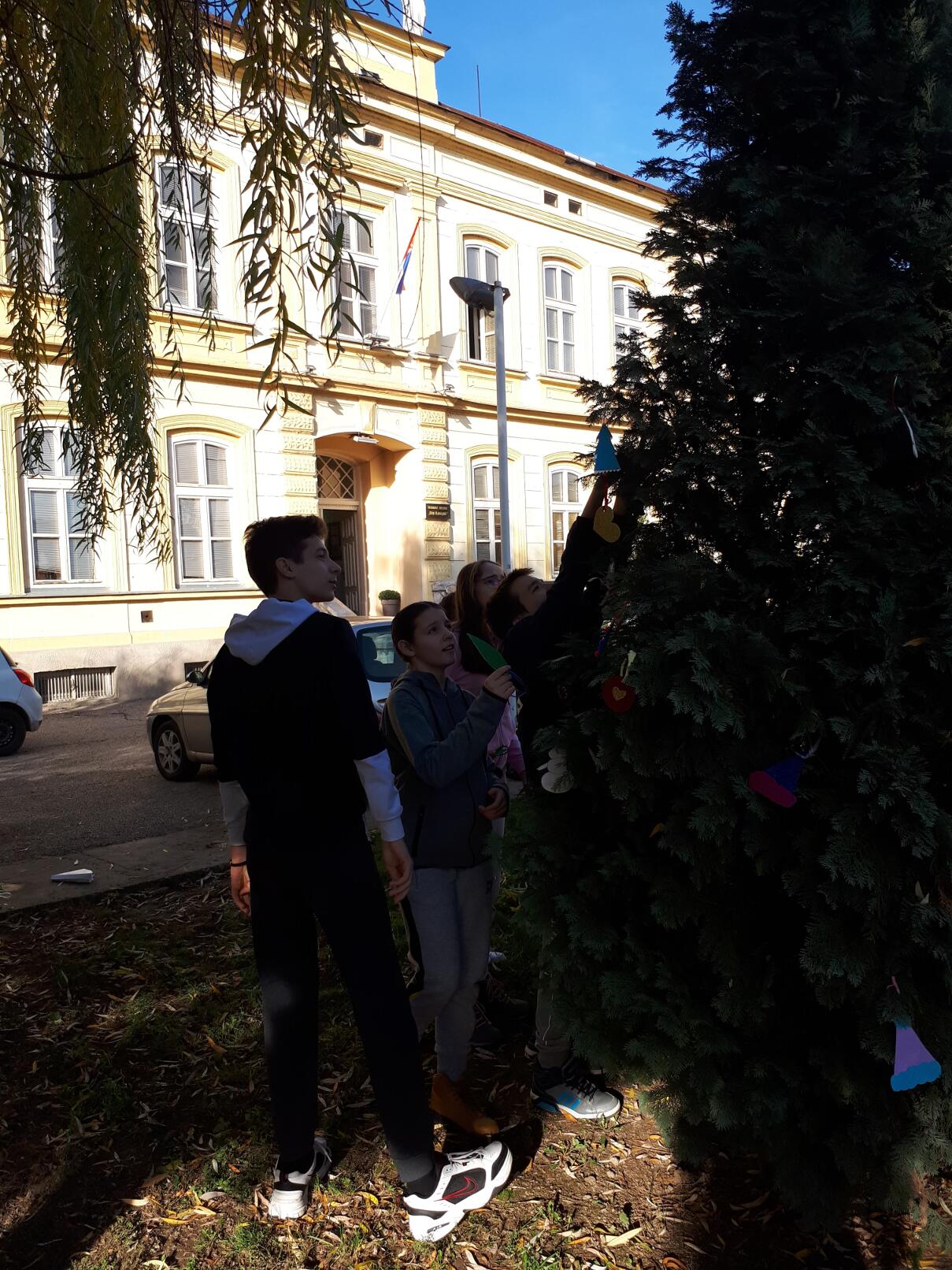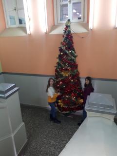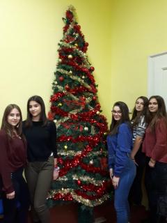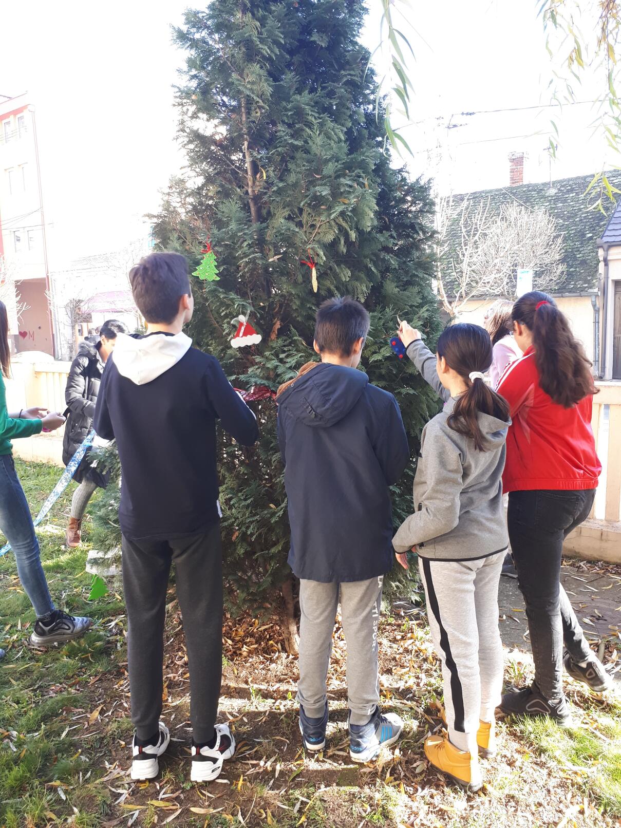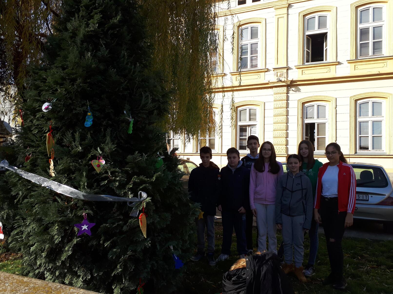 Ближи се Нова година, а празнично расположење већ увелико влада у нашој школи! Ученици 8. разреда учествовали су у традиционалном украшавању новогодишње јелке у ходнику, док су ученици 7. разреда са наставницом ликовне културе направили украсе за јелку у дворишту школе.