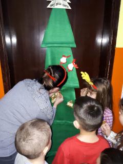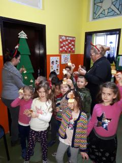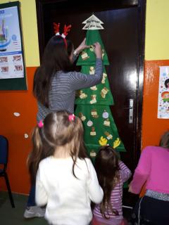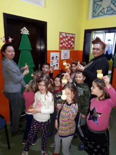 Уз помоћ своје васпитачице Јелене Савић осликали су украсе и написали новогодишње жеље свој деци света, које су потом заједно поставили на јелку.