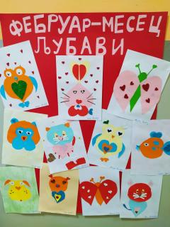 У продуженом боравку ученици 1. и 2. разреда, заједно са својом учитељицом Тањом Ђукић на часу слободних активности разговарали су о врстама љубави и важности неговања истих, а након тога радили су ликовне радове који представљају животиње од срцоликих облика.