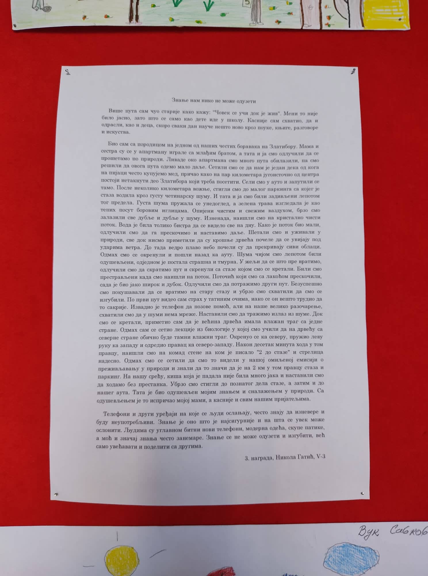 Литерарни конкурс на тему Знање нам нико не може одузети, V-VIII разред: