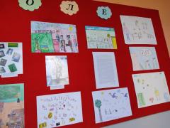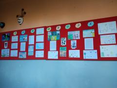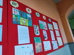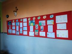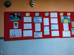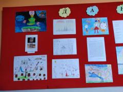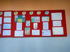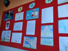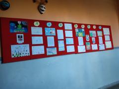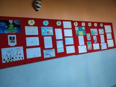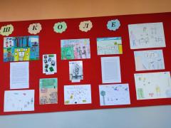 Изложба ученичких радова организована је у ходнику школе.