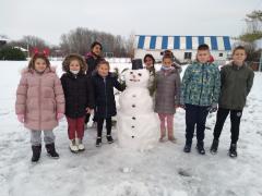 Ученици другог и четвртог разреда у Табановићу, играли су се на снегу на часу физичког.