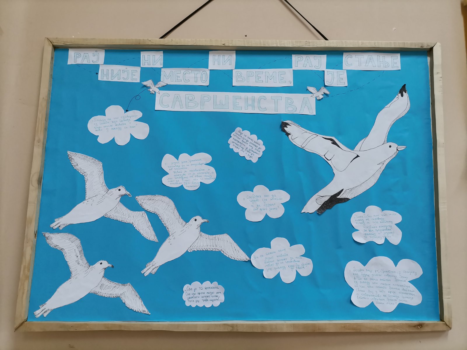 Инспирисани слободним летом Џонатана Ливингстона, осмаци у нашој школи у Мачванском Причиновићу, уз помоћ своје наставнице српског језика, спремају се да полете у непознато. Не треба да забораве да рај није ни време ни место, већ стање савршенства.