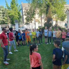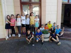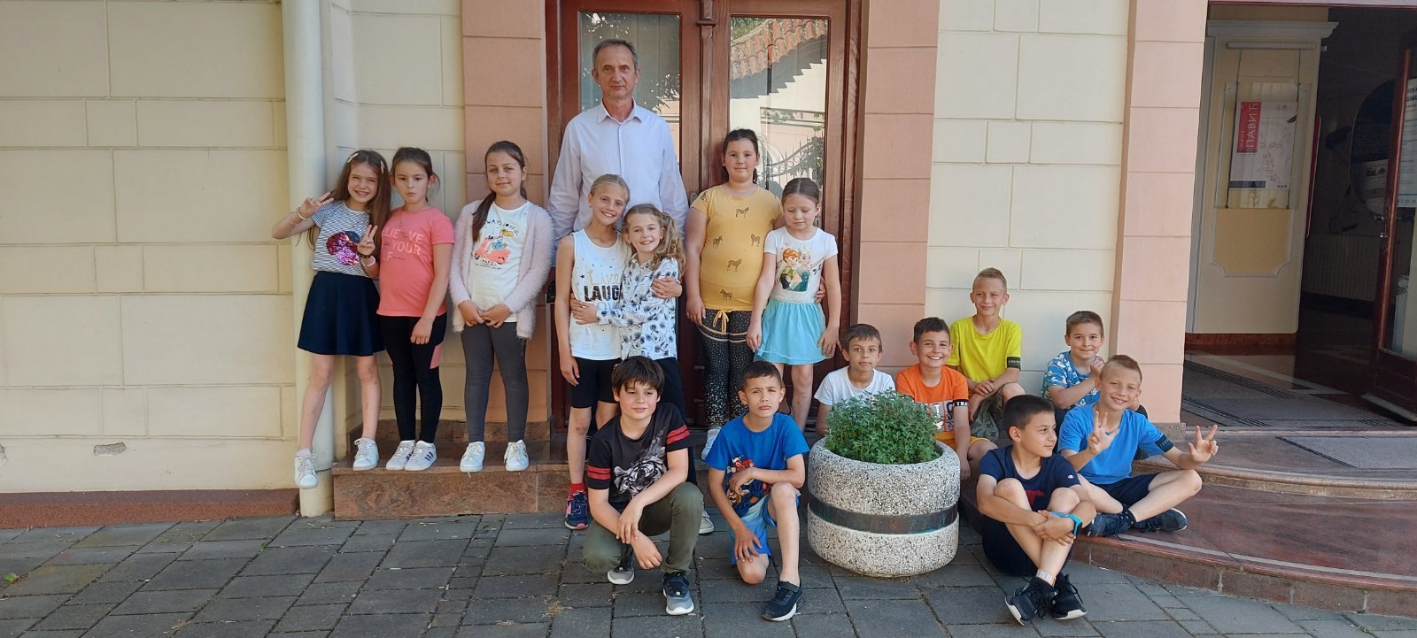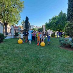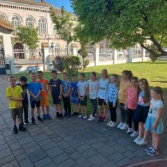 У четвртак, 12. маја, наше одељење 2-2 са својим учитељем Зораном Поповићем посетило је Библиотеку шабачку, у којој је у 17 часова одржан програм „Са књигом на глави и децом у трави“.
