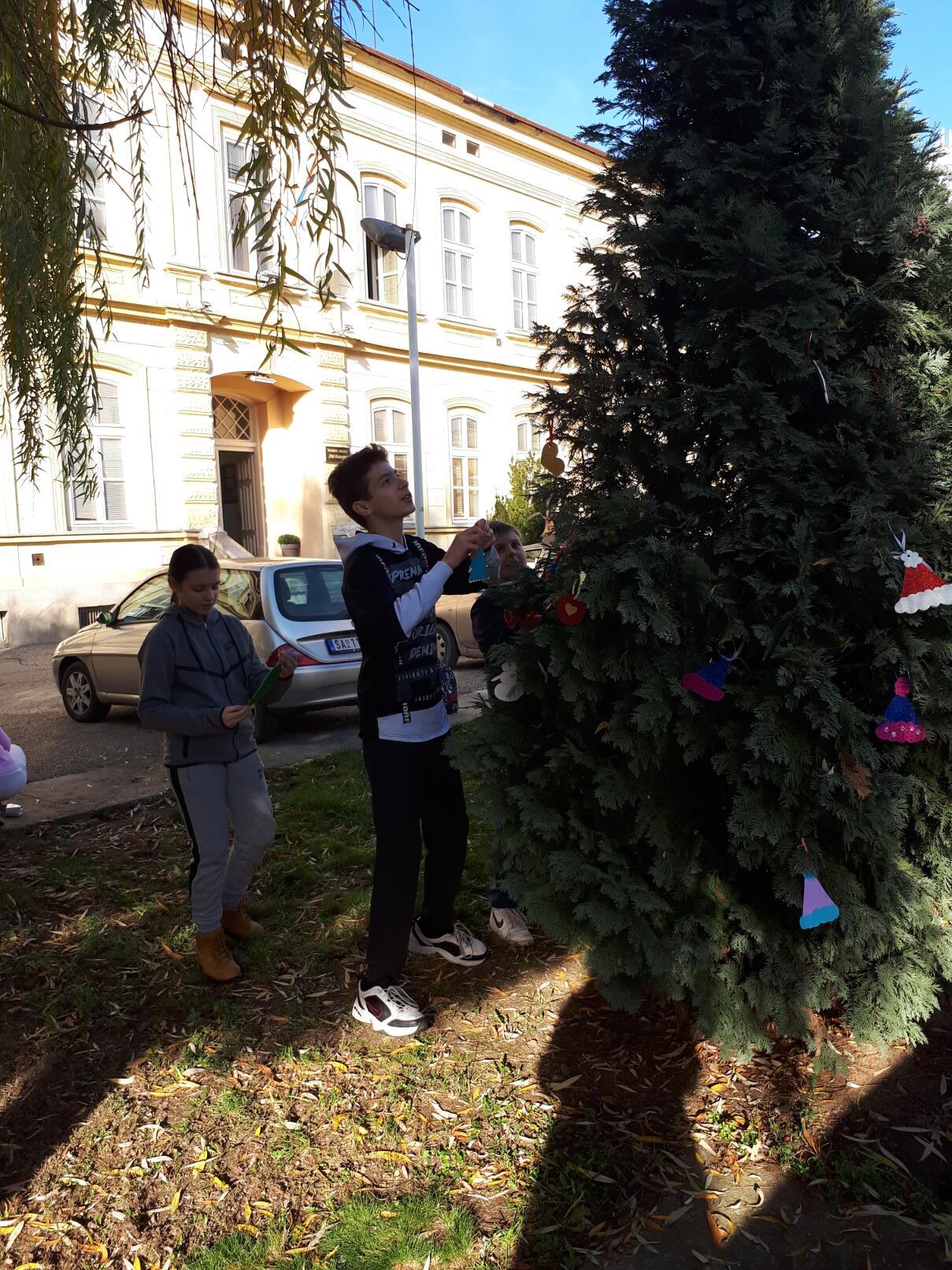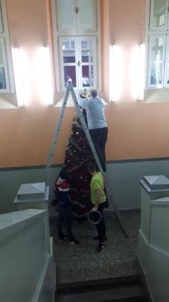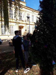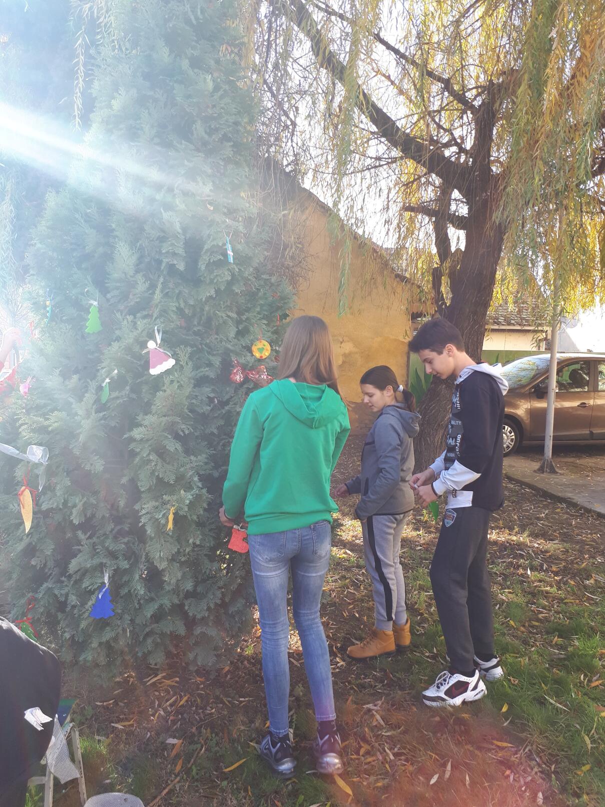 Ближи се Нова година, а празнично расположење већ увелико влада у нашој школи! Ученици 8. разреда учествовали су у традиционалном украшавању новогодишње јелке у ходнику, док су ученици 7. разреда са наставницом ликовне културе направили украсе за јелку у дворишту школе.