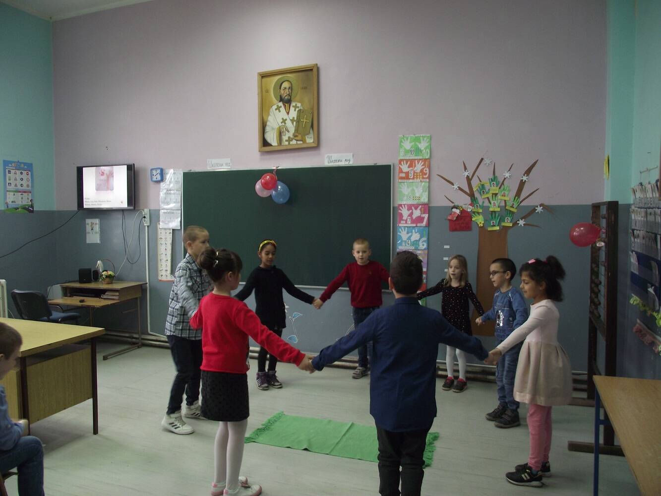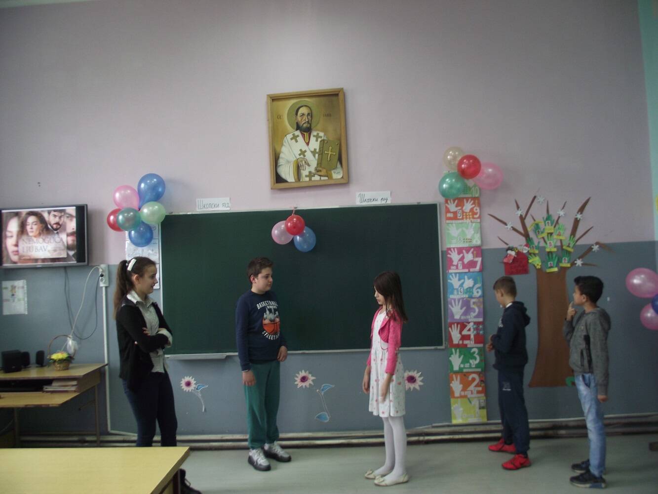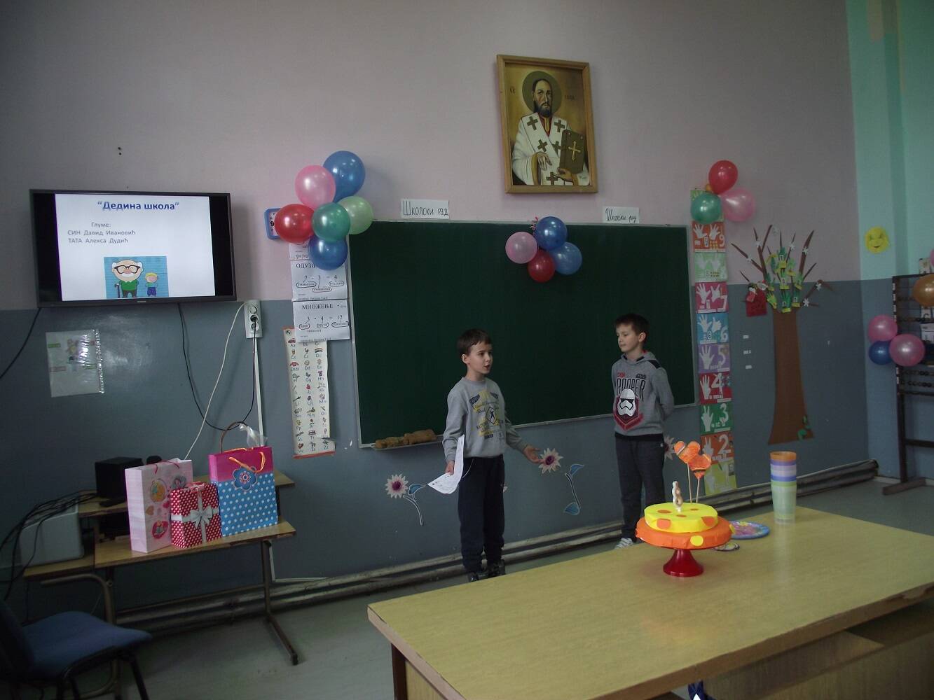 Учитељице Данијела Станојловић, Светлана Бурсаћ и Нада Лолић су заједно са својим ученицима припремиле програм ком су присуствовали и директор школе, педагог и учитељице које су сада у пензији.