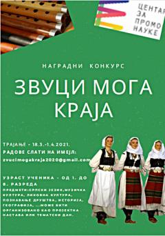 У периоду од 18. 3. до 1. 4. одржаће се онлајн наградни конкурс на тему пројекта "Звуци мога краја", аутора Снежане Шалаи Тибор.