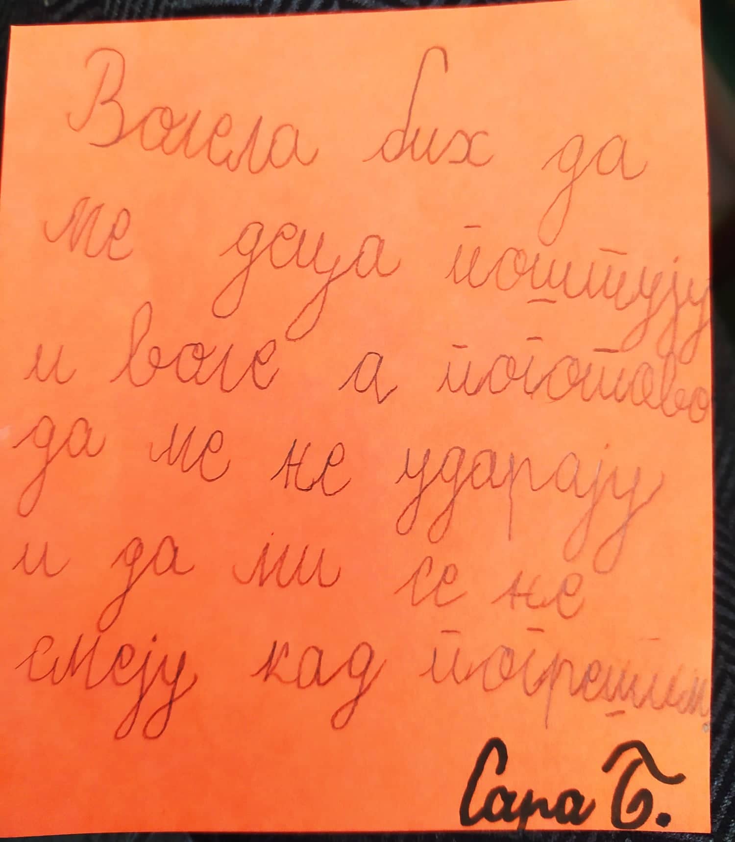 Након овога, ученици су писали поруке на тему „Како бих волео/ла“ да се другари понашају према мени“.