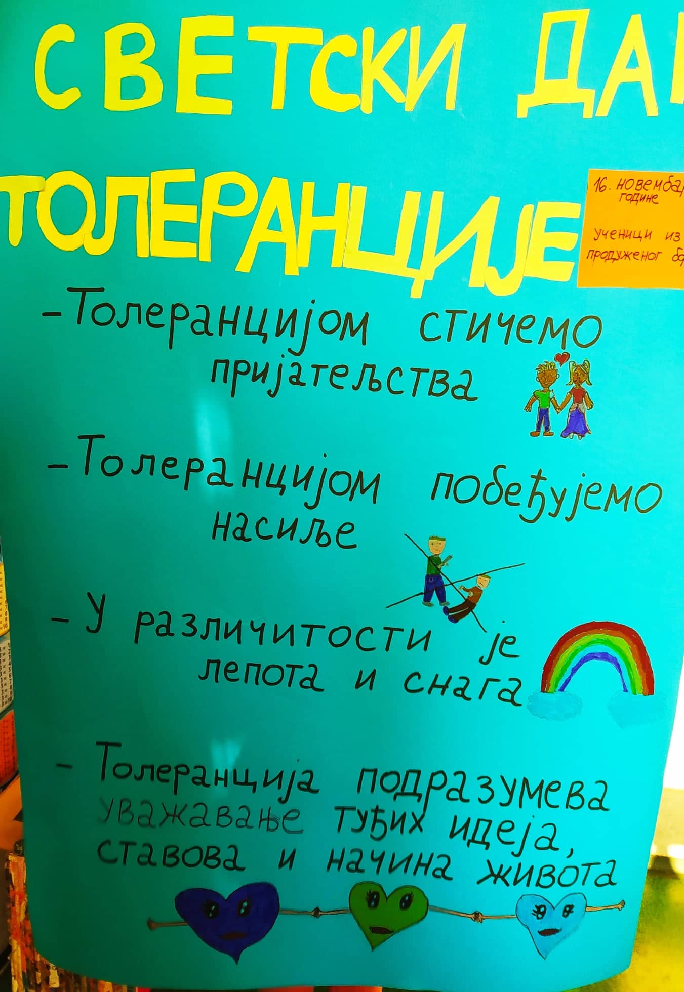 16. новембра ученици продуженог боравска, са својом учитељицом Тањом Ђукић, обележили су Светски дан толеранције.