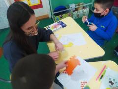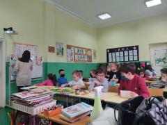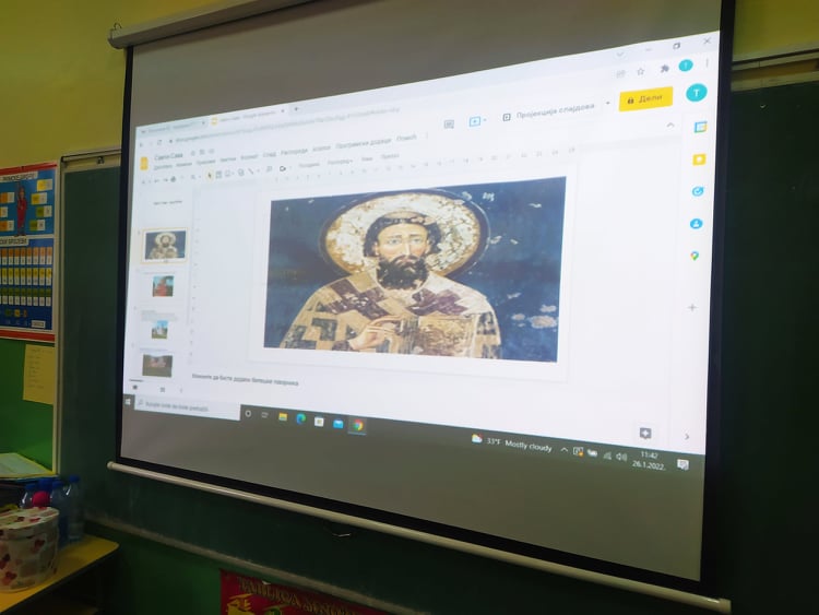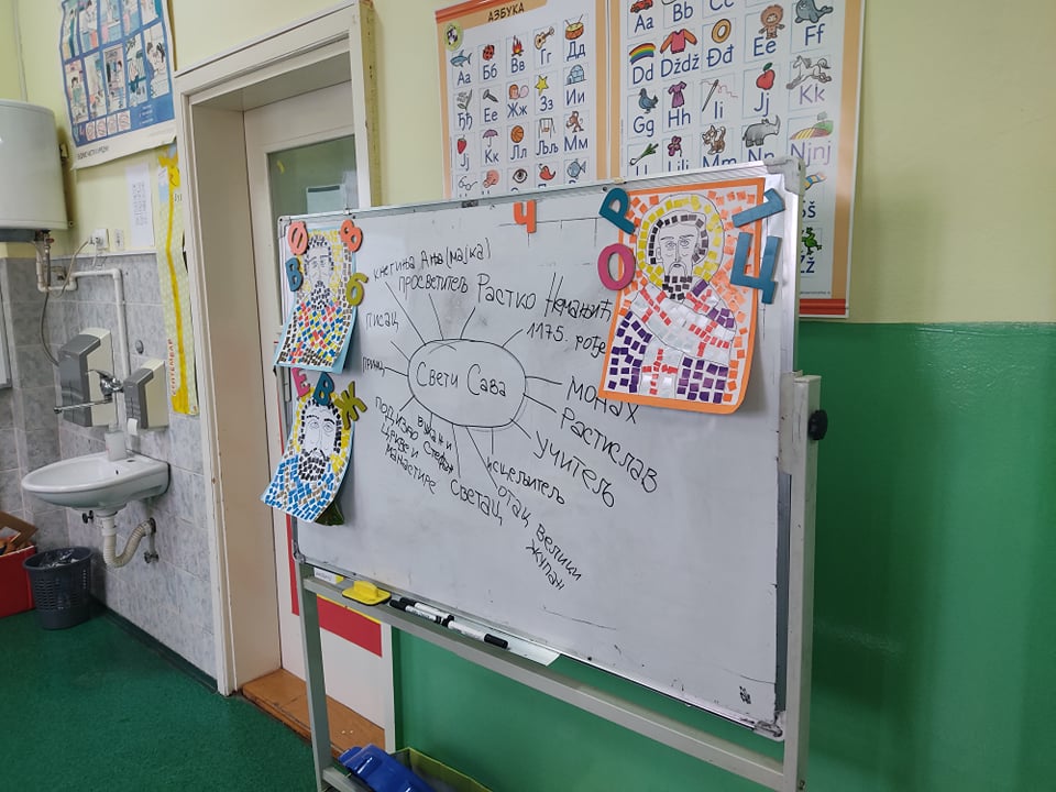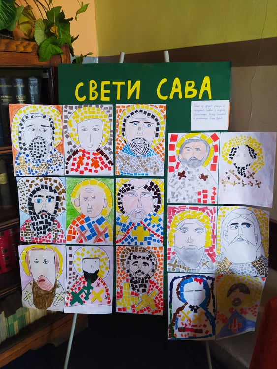 У уводном делу часа са својом учитељицом Тањом Ђукић правили су грозд асоцијација, чији је централни појам био Свети Сава, а затим им је учитељица одржала кратко предавање и презентацију о Растку Немањићу и српским средњовековним манастирима. Гост на часу била је и наша школска библиотекарка Милица Петровић, која је упознала ученике са неким од најзанимљивијих народних прича и легенди о Светом Сави и разговарала са њима књигама о Светом Сави које се могу наћи у школској библиотеци. У завршном делу часа, ученици су израђивали радове на ову тему служећи се техником мозаика. Погледајте како су се провели!