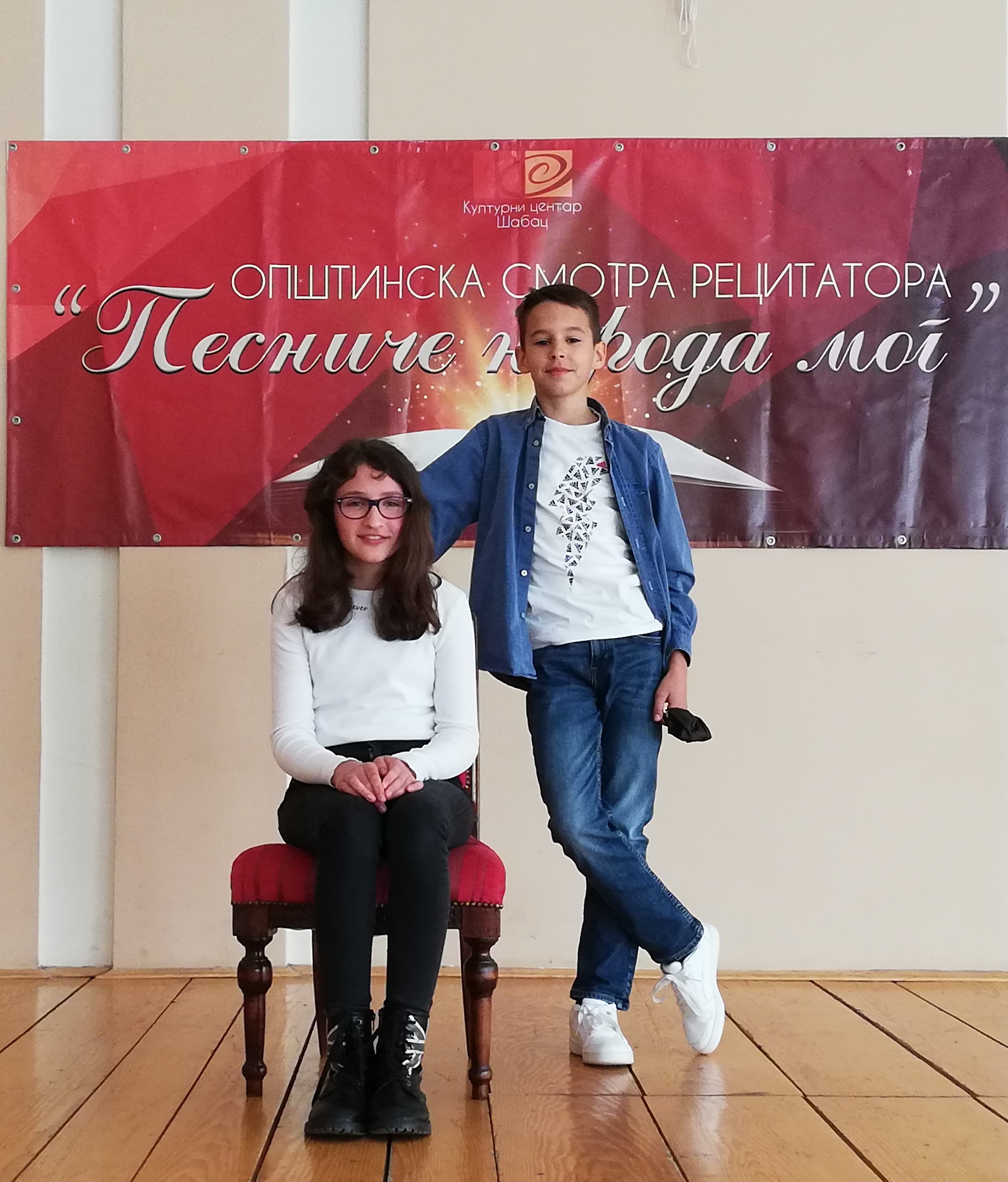 Наши ученици на Општинској смотри рецитатора у Културном центру 21. и 22.03. остварили су следеће успехе: Вук Живковић (1-2) и Матеја Крстић (5-3) су финалисти такмичења. На фотографијама видимо наше представнике и финалисте са жиријем, а Вука и Матеју настављамо да бодримо на наредним ступњевима смотре!