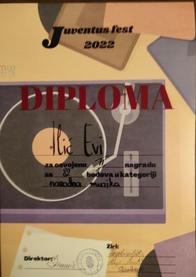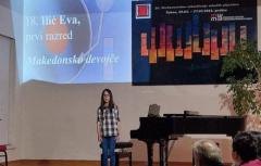 Наша ученица издвојеног одељења у Касарским Ливадама Ева Илић (3-3), освојила је 2. награду на такмичењу музичке школе "Михаило Вукдраговић" Јувентус Фест, одржаног 30.03.2022. у категорији народне музике са нумером "Македонско девојче". Честитамо Еви и желимо јој да настави са успесима!